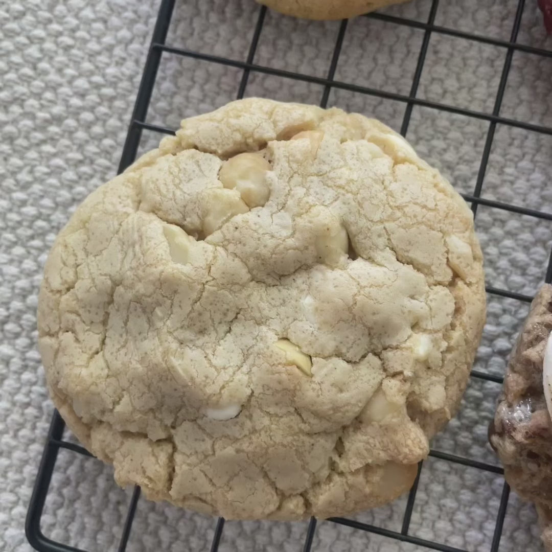 Contains 8 cookies: S'mores, Pumpkin Spice, Oreo, Lotus Biscoff, Chocolate Chip, White Chocolate Macadamia, M&M's, Red Velvet.