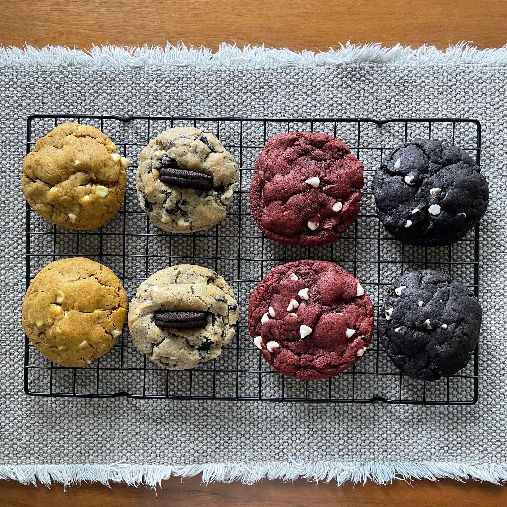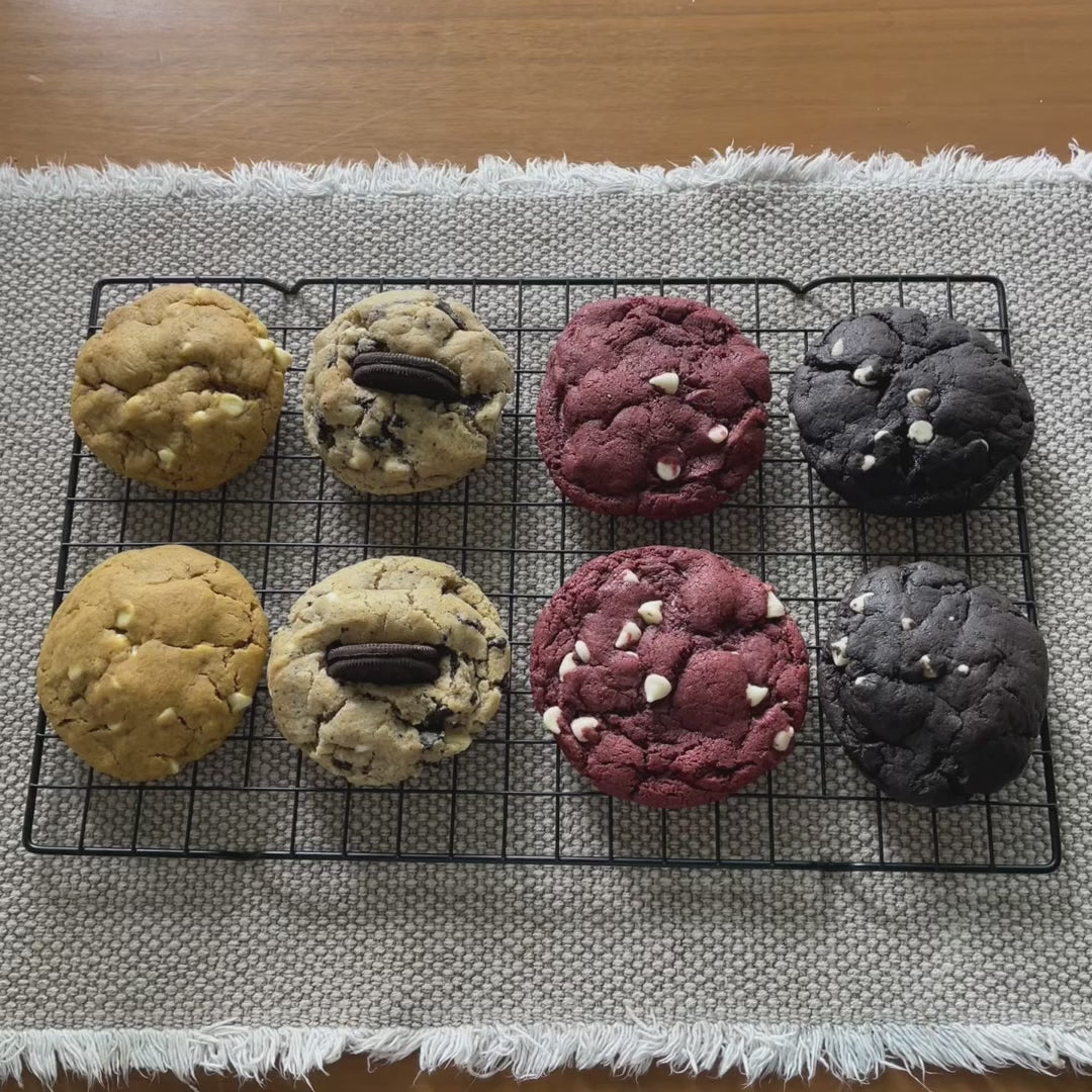 Dark as night, red as blood, yellow as pumpkin! 🎃 Our Halloween Cookie Set has 8 frightfully good cookies: Black Velvet, Red Velvet, Oreo, and Pumpkin Spice. Spook your friends, treat yourself—grab yours before they vanish!