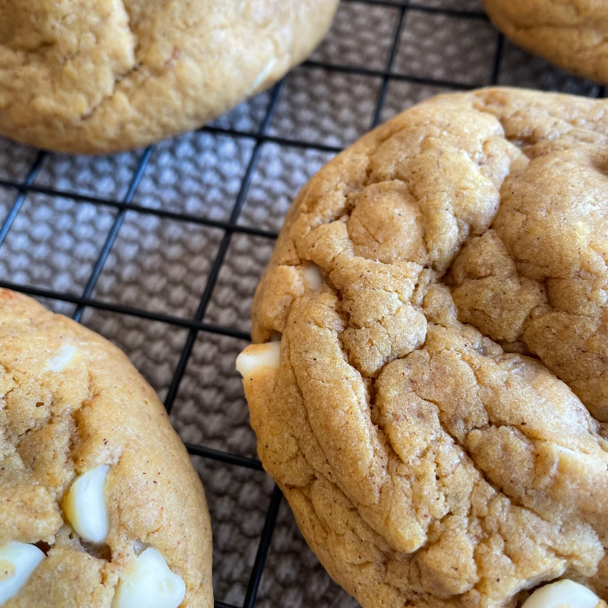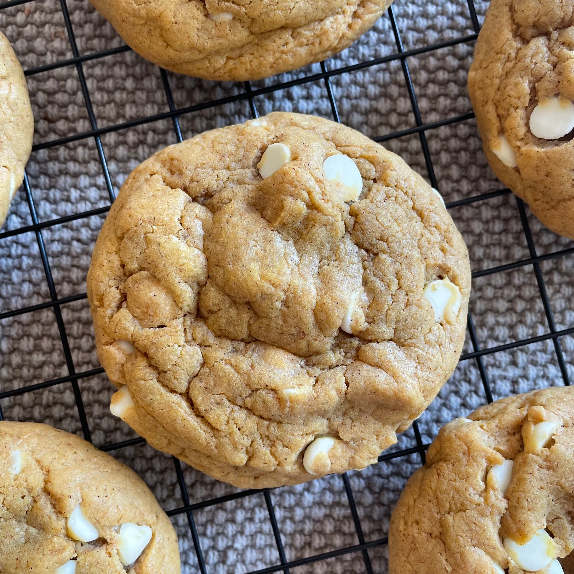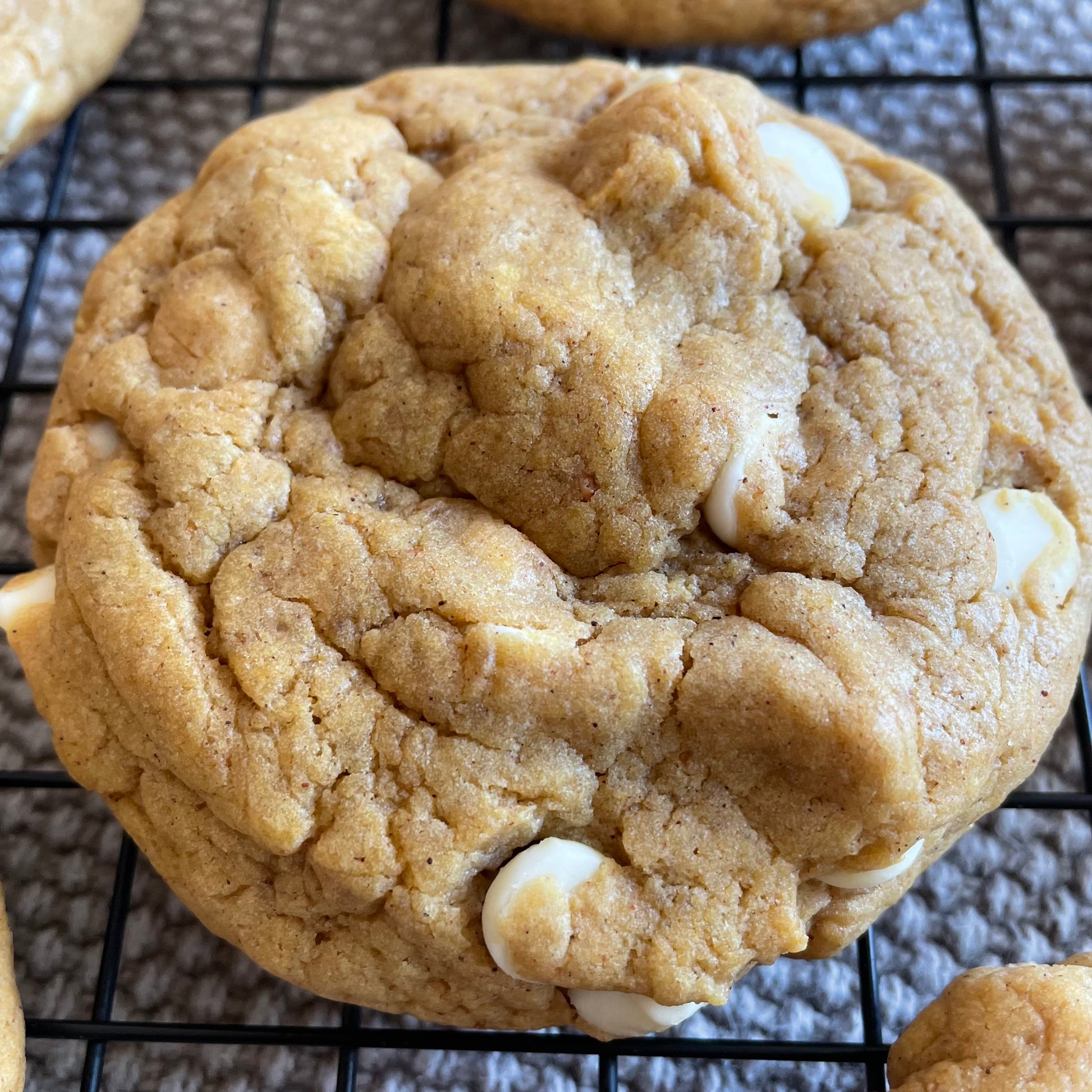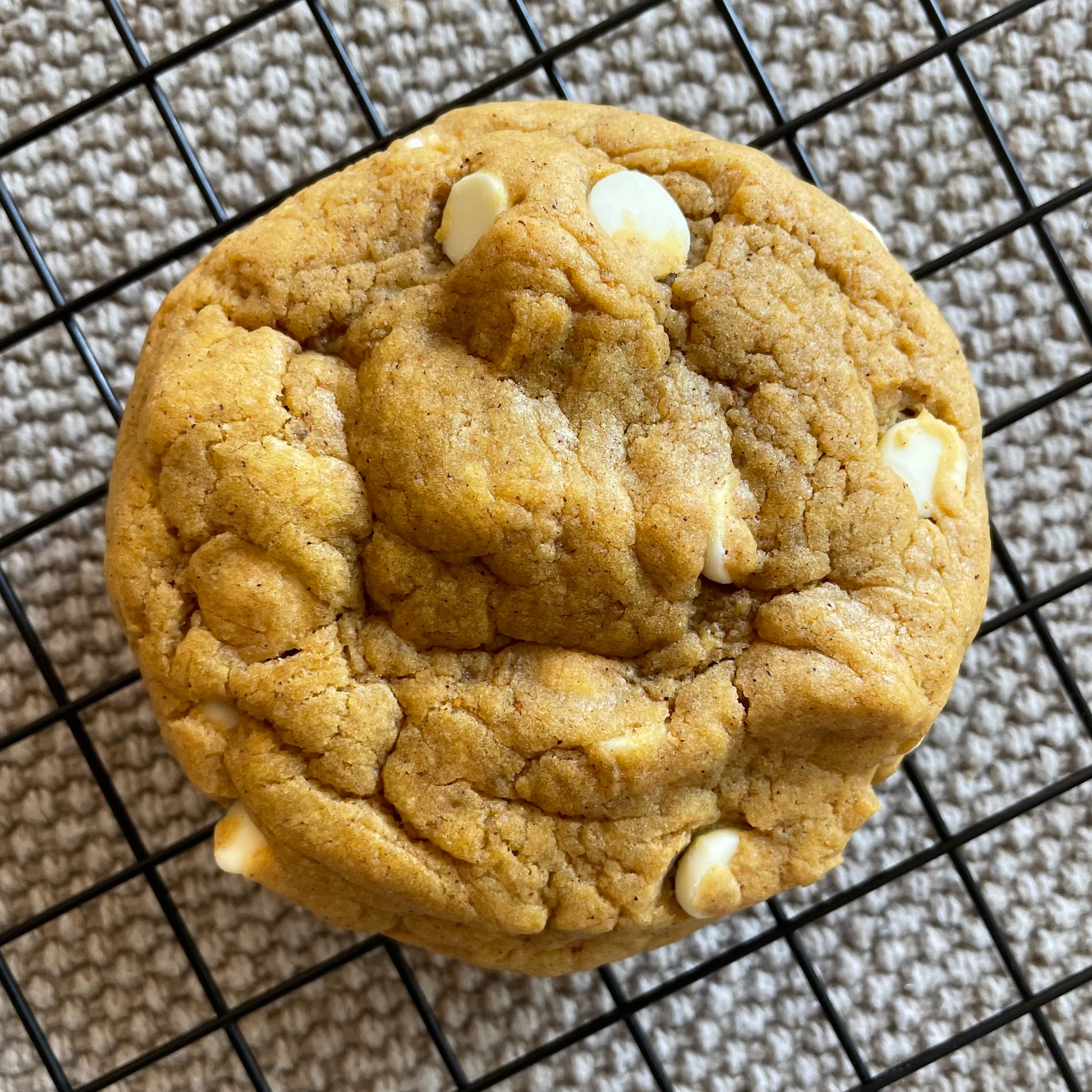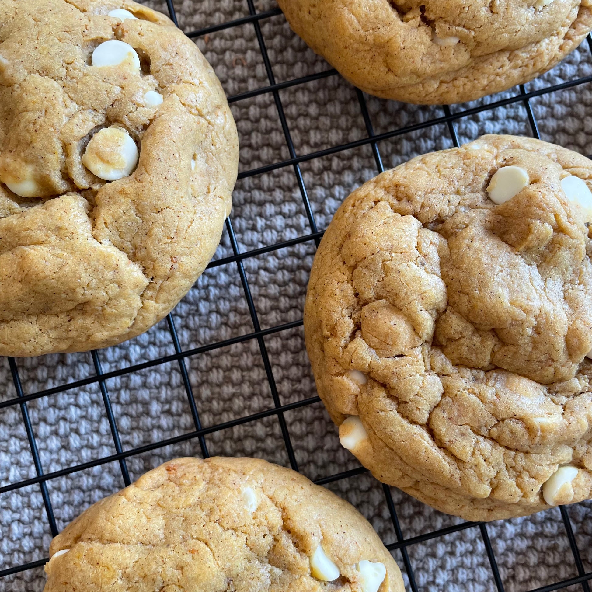 Ingredients: Light brown sugar, white chocolate chips, all-purpose flour, salted butter, bread flour, granulated sugar, pumpkin purée, eggs, vanilla extract, corn starch, salt, baking soda, baking powder.